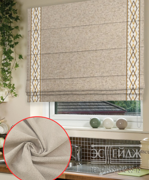 Римская штора "Эстейдж" Блэкаут - это стильное и функциональное решение для оформления оконного проема. Однотонная бежевая штора с геометрическим бордюром легко впишется в любой интерьер и станет ярким акцентом в дизайне помещения.