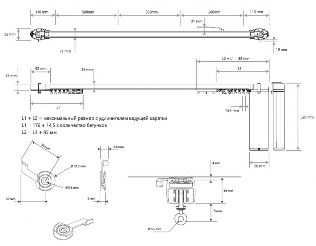 Электрокарниз UNIT-2 2/80 RT+WT