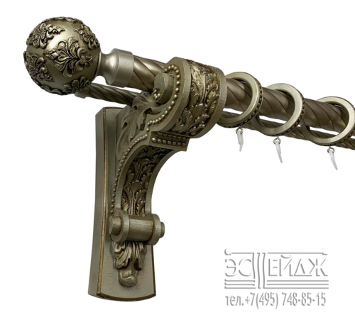 Эксклюзивная коллекция карнизов Олимпия. Широкий ассортимент оригинальных наконечников и кронштейнов, выполненных вручную. Подходит для тяжелых и очень тяжелых штор.