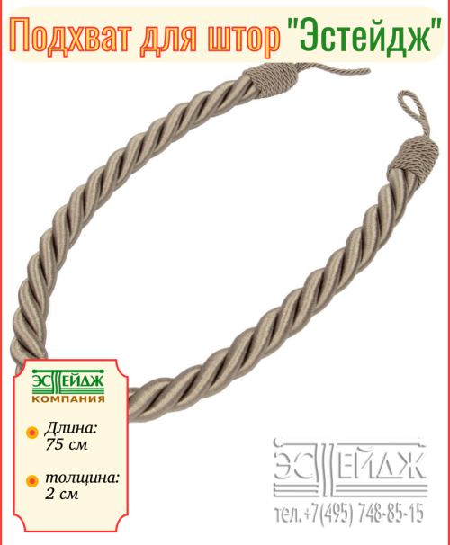 Подхват для штор "витой шнур" цв. серо-бежевый теперь