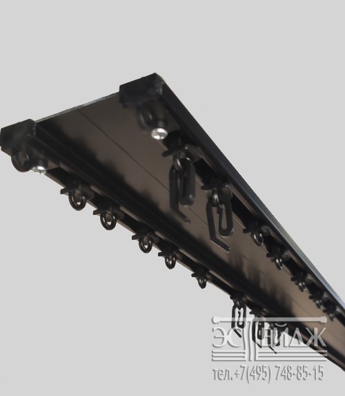 Двухрядный черный карниз в сборе для легких и среднего веса штор